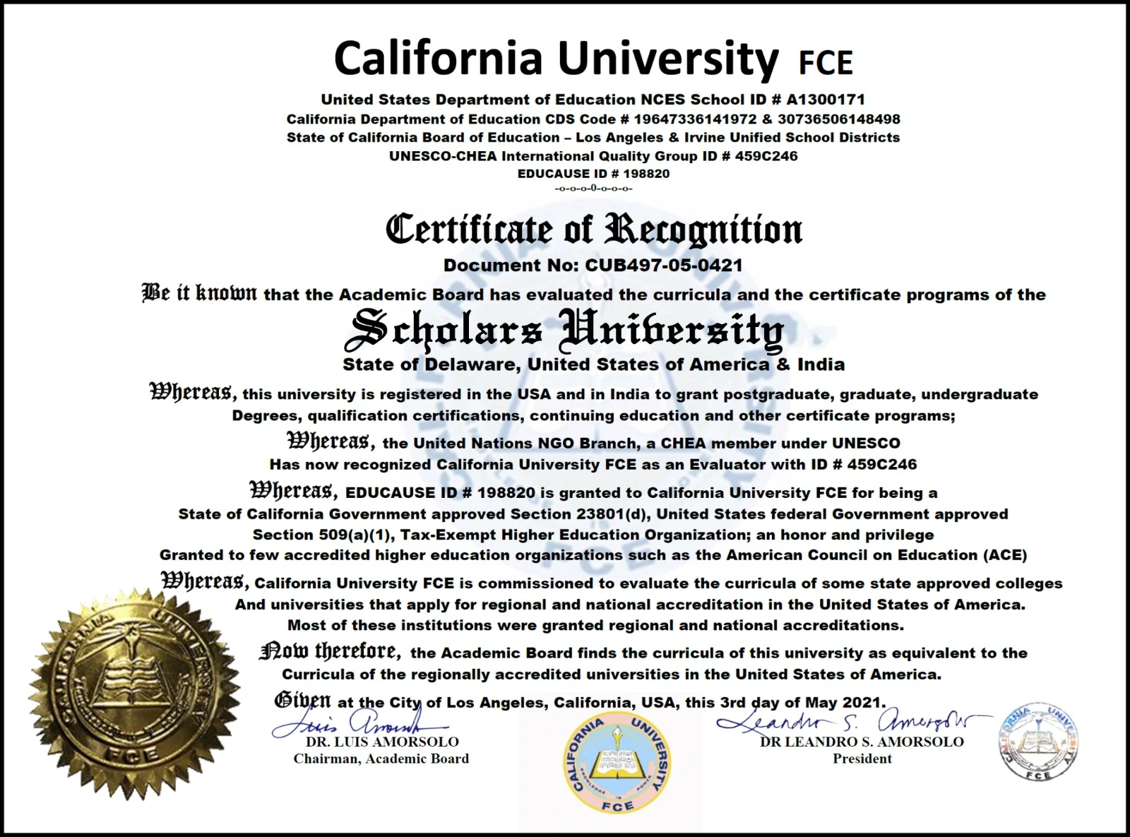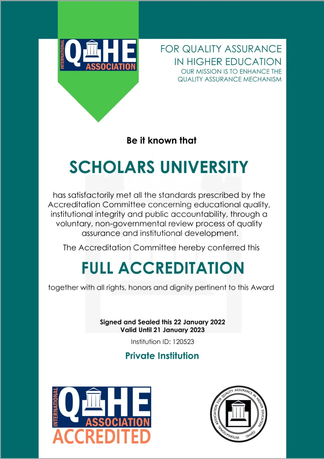 Scholars University is dedicated to maintaining the highest standards of academic excellence and institutional integrity. Our accreditations and authorizations reflect our unwavering commitment to providing quality education that meets global standards and prepares students to excel in their chosen fields.